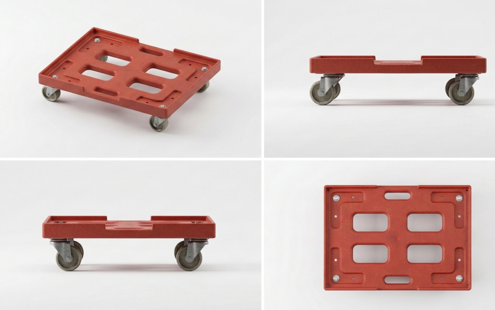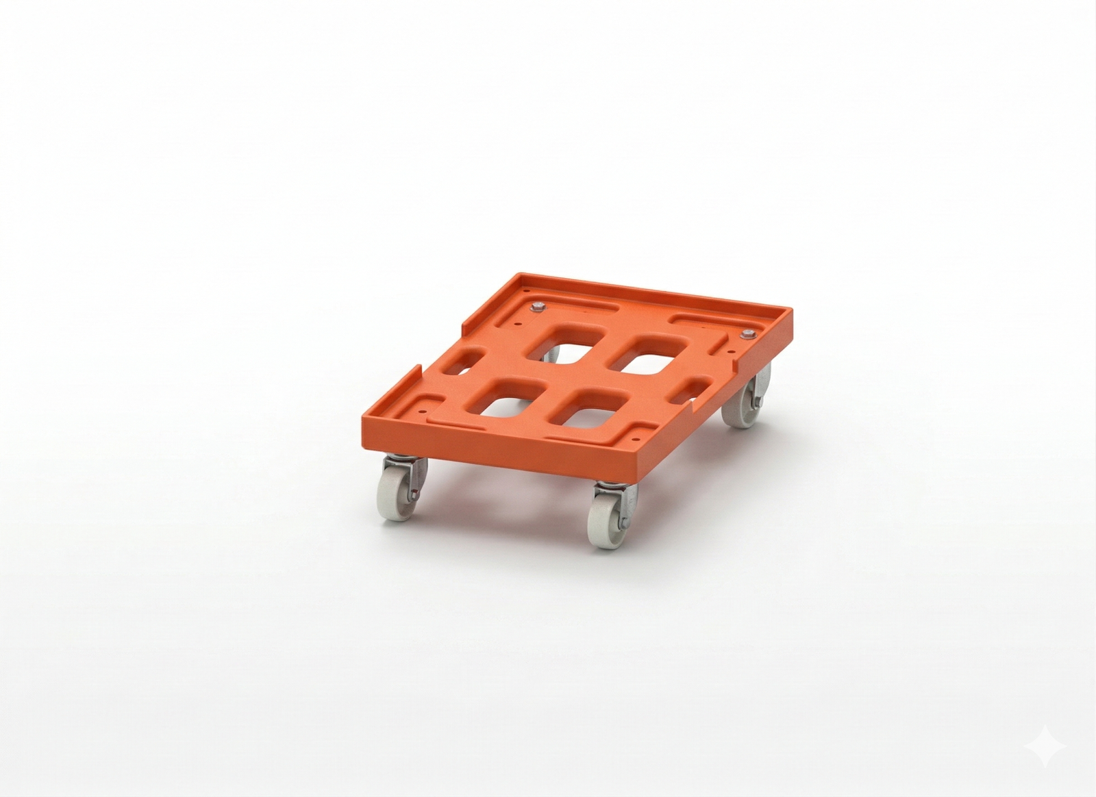 עגלת ה-Crate Dolly מיוצרת מחומר פוליאתילן (LLDPE) איכותי, המעניק לה חוסן מבני גבוה ועמידות יוצאת דופן בפני חבטות, שברים ותנאי סביבה מאתגרים. המבנה תוכנן בקפידה כדי להבטיח אחיזה בטוחה ומונעת החלקה למגוון סוגי ארגזים סטנדרטיים, תוך שמירה על משקל עצמי נמוך ויכולת תמרון קלה במעברים צרים.